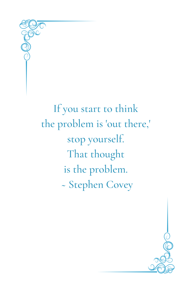 If you start to think the problem is ‘out there,’ stop yourself. That thought is the problem.