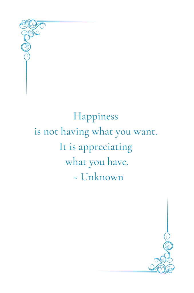 Gratitude is key to life. Counting our blessings brings happiness. For how can you not be happy when you appreciate what you have?