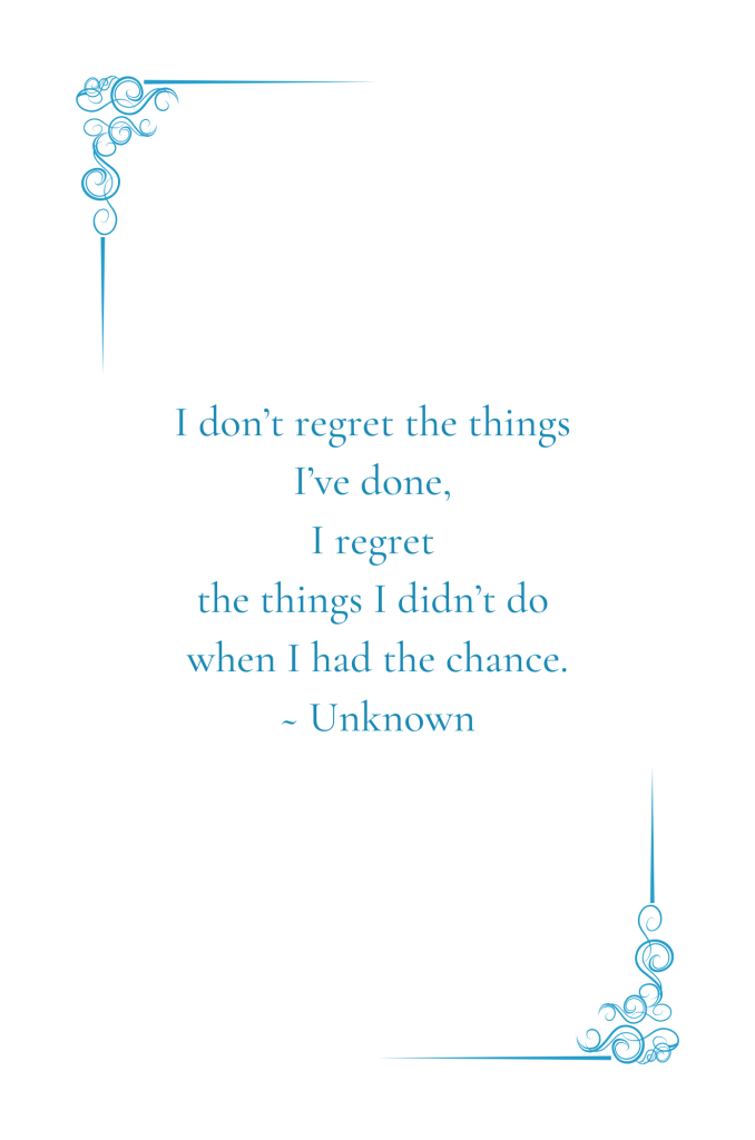 I don’t regret the things I’ve done. I regret the things I didn’t do when I had the chance.
