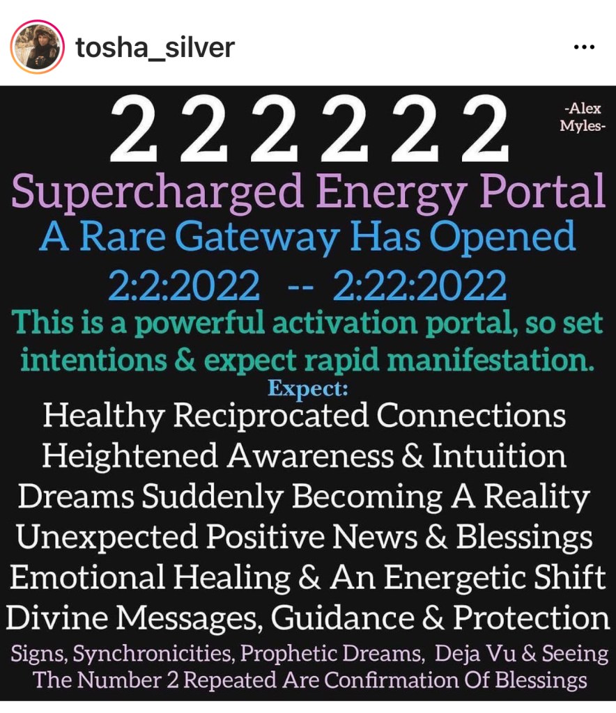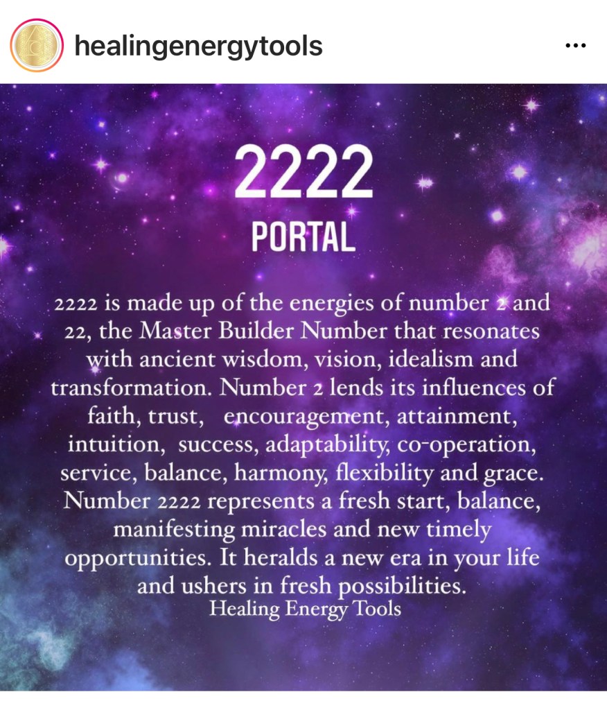 The date 2/02/2022 is special as you can imagine with all the 2’s involved. I follow some amazing people on Instagram (and WP), so I thought I’d highlight them by their posts this morning. So, if you’re interested in other forms of healing, you might want to follow them as well!